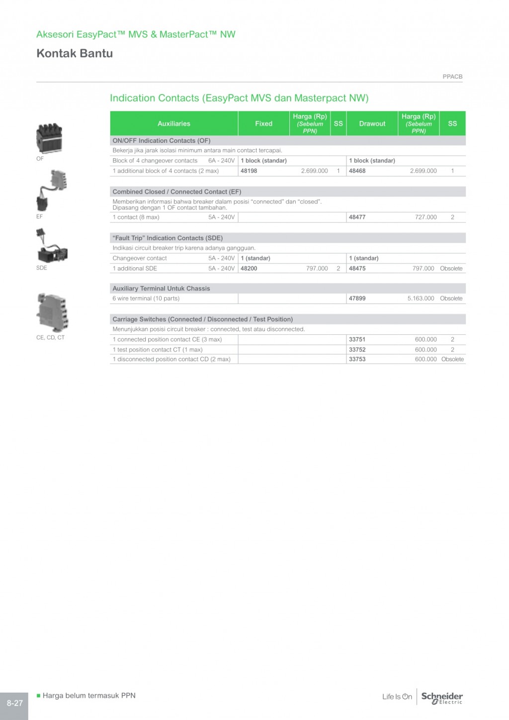 SCHNEIDER, Aksesoris EasyPact MVS & MasterPact NW - Kontak Bantu