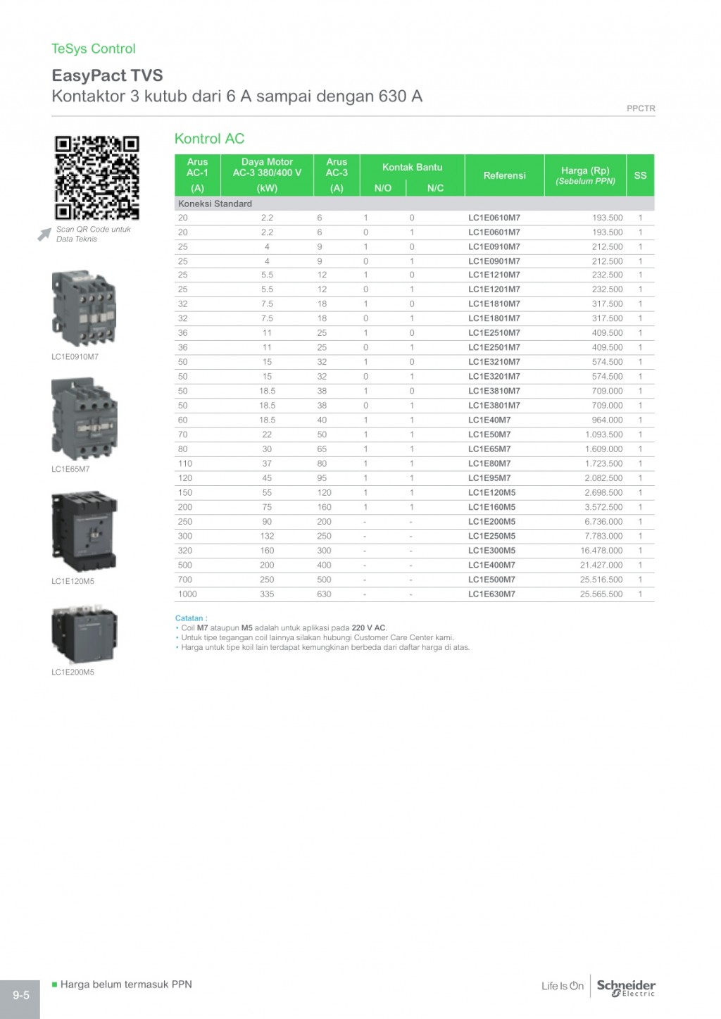 SCHNEIDER, TeSys Control-EasyPact TVS - Kontaktor 3 kutub dari 9A s/d 630A