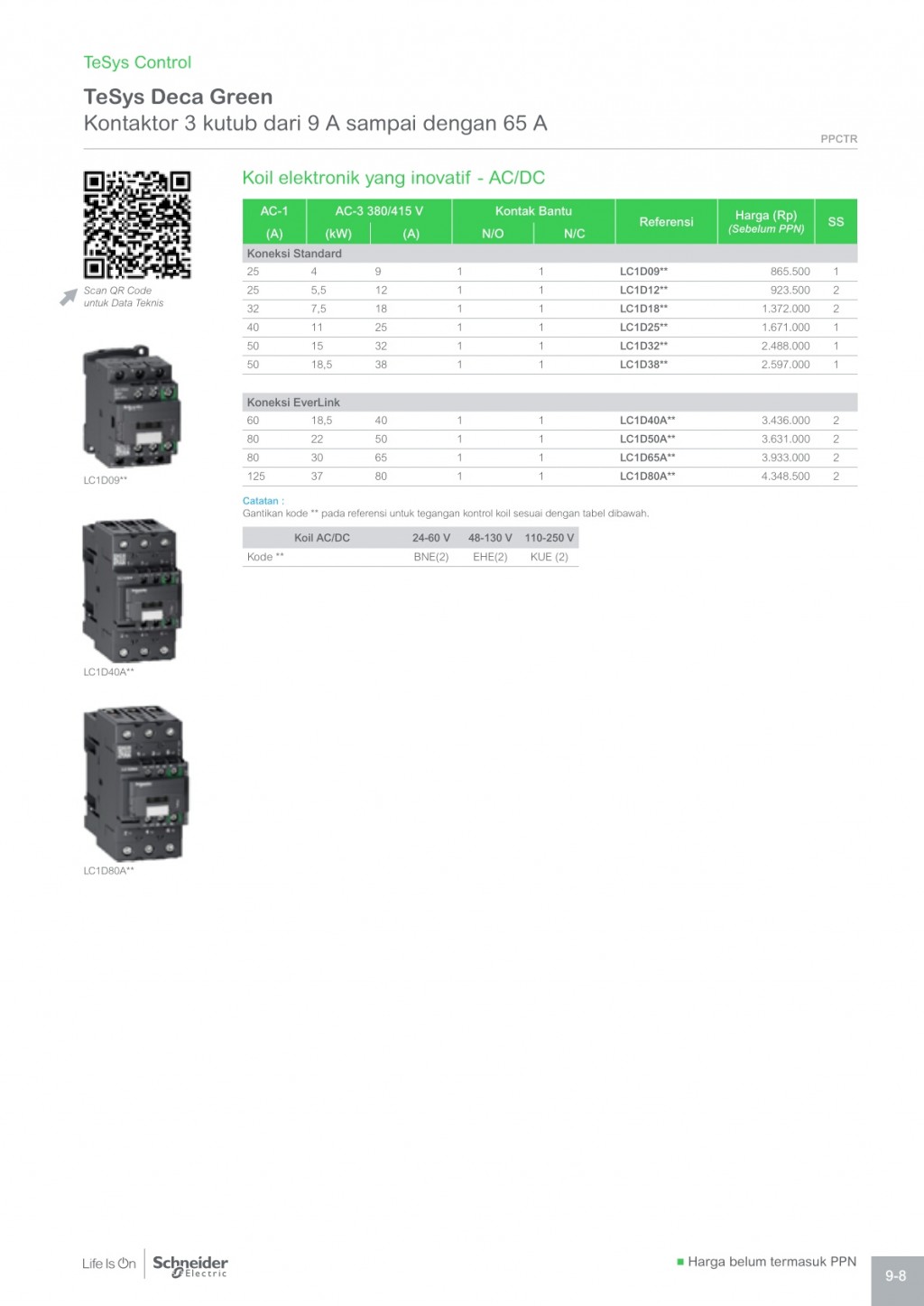 SCHNEIDER, TeSys Control-TeSys Deca Green - Kontaktor 3 kutub dari 9A s/d 65A