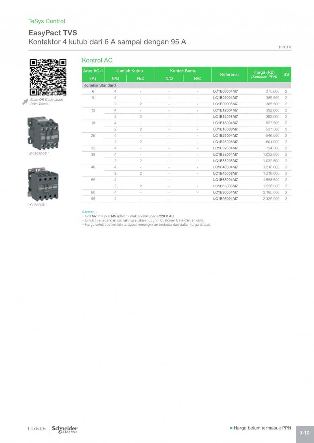 SCHNEIDER, TeSys Control-EasyPact TVS - Kontaktor 4 kutub dari 6A s/d 95A